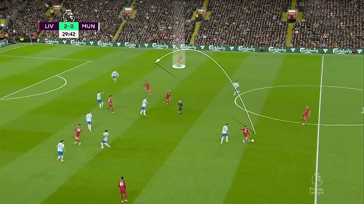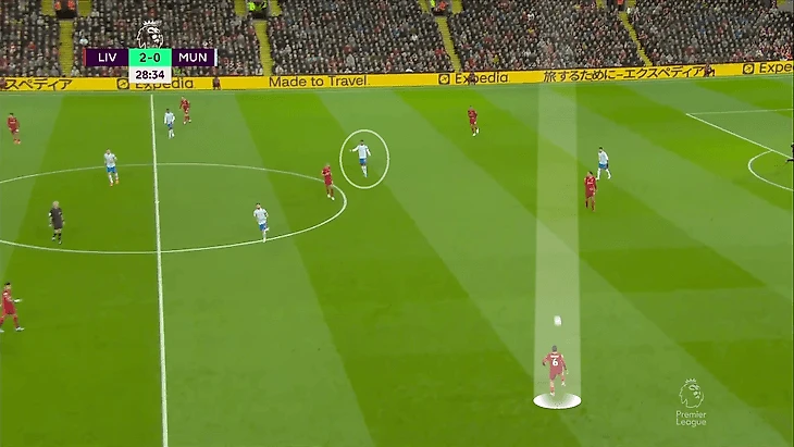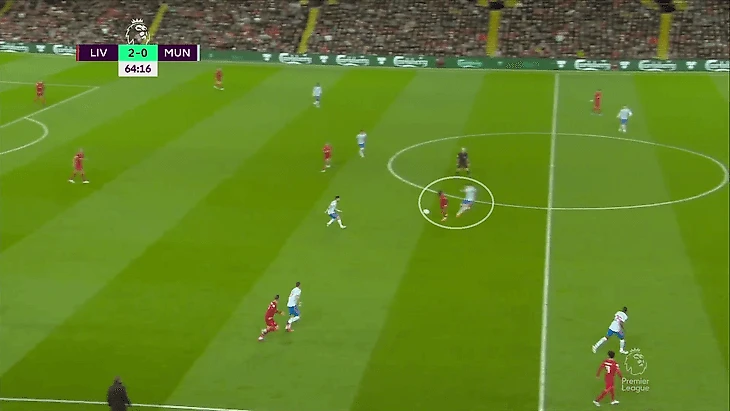 На противоположном фланге такие треугольники тоже создаются, но гораздо реже. Одна из причин – манера Тиаго Алькантары. В отличие от Хендерсона, испанец предпочитает действовать в глубине и помогать с розыгрышем мяча.