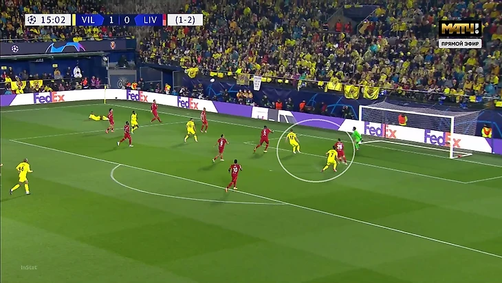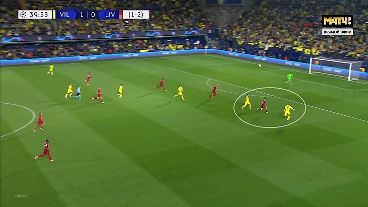Второй вариант срабатывал чаще. Из-за этого возникали максимально рискованные ситуации в обороне «Вильярреала» – 4-в-4 или 3-в-3, если кто-то из защитников глубоко уходил за соперником. Один из таких эпизодов привел к убойному выходу Жоты один на один, когда Салах сфолил на Херонимо Рульи.