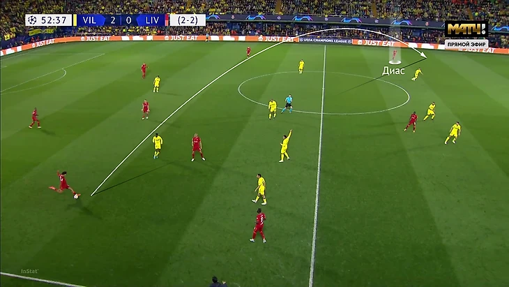 Луис блистал и индивидуально, и благодаря поддержке партнеров. Несмотря на то, что отыграл всего тайм, стал лучшим в команде по ударам и удачным обводкам (по 4). Чтобы Диас проявил эти качества, «Ливерпуль» выводил его на пространство за счет диагоналей. Благодаря тому, что «Вильярреал» хуже прессинговал, было и время подготовить передачу, и обработать ее.