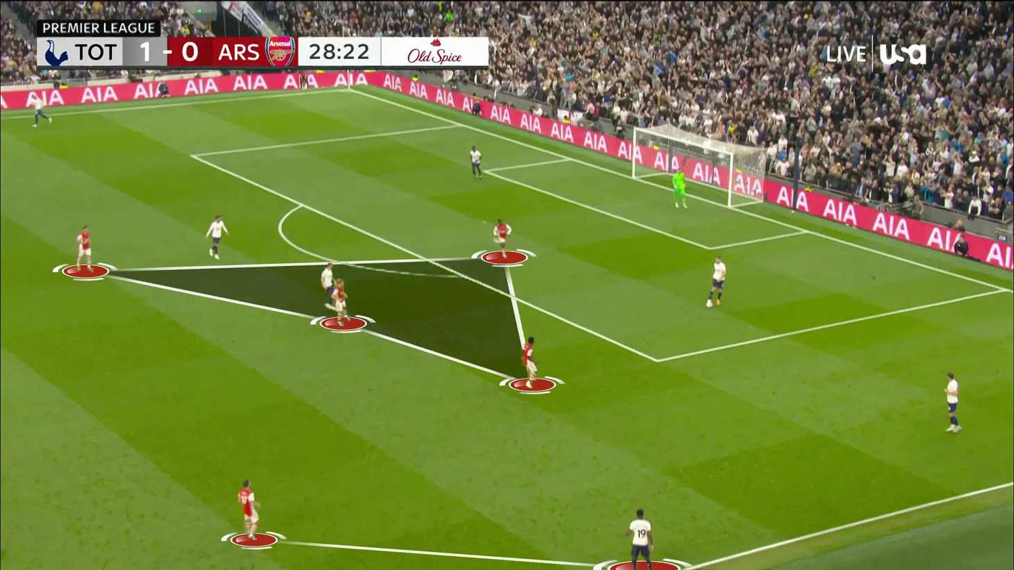 Прессинг-идея Артеты оказалась крайне неэффективной. «Тоттенхэм» при Конте хорошо выманивает соперников в прессинг (забивали таким образом даже «Ливерпулю» и «Ман Сити»). Команда и без того уверенная в этой стадии, а в рамках вчерашней картины еще получала свободного игрока (даже двух, если считать с вратарем):