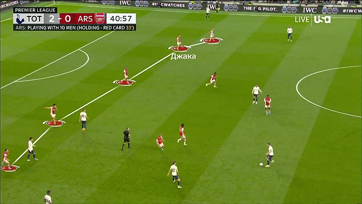После удаления рисунок матча изменился. Джака переместился на позицию левого центрального защитника:
