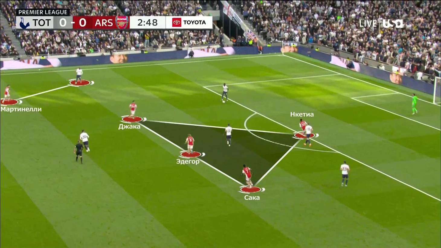 Такое расположение было очень умышленным и прослеживалось при каждом розыгрыше соперника. Джака действительно играл на одной линии с Эдегором и Сакой: