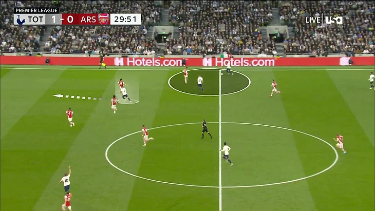 Одним из главных факторов риска была индивидуальная дуэль Холдинг-Сон. Она вызывала много опасений уже после объявления составов. Решение Артеты по структуре прессинга сделало ее намного персональнее. В обычном рисунке Сона передавали бы между собой правый защитник (Соареш) и центральный (Холдинг), а тут вся ответственность упала на Роба.