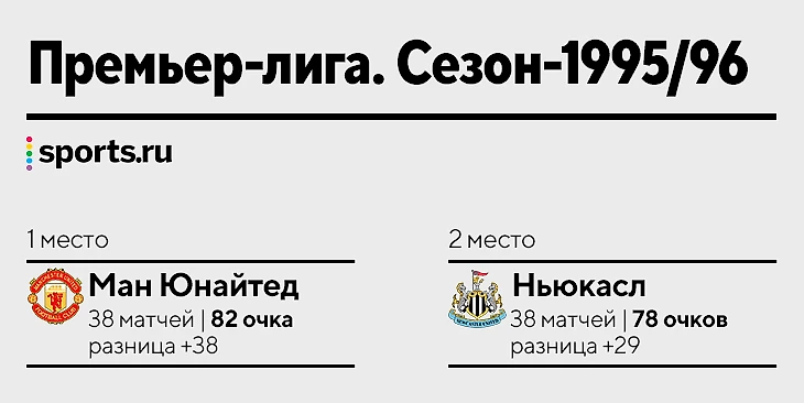 Сезон-1995/96: «МЮ» прагматично отыграл отставание в 12 очков у «Ньюкасла» и оформил чемпионство разгромом 3:0