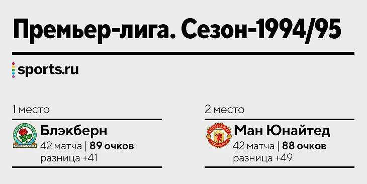Сезон-1994/95: «Блэкберн» взял единственный титул АПЛ (хоть и проиграл в последнем туре), обломав третье чемпионство для «Манчестер Юнайтед»