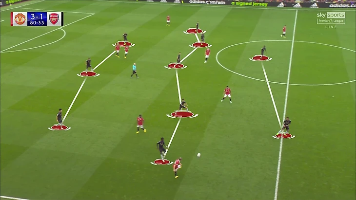 Эрик уже не пытался переиграть «Арсенал» во владении и комбинационном футболе (в начале – пытался и какое-то время переигрывал) – он принял «МЮ» в роли контратакующей команды и постарался дать игрокам лучшие шансы в таком сценарии.