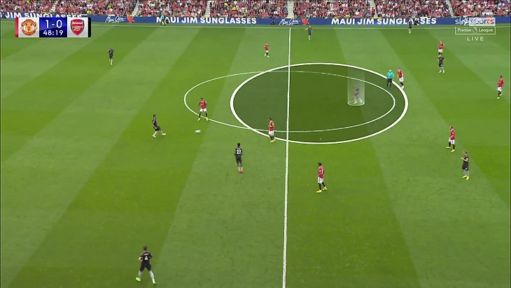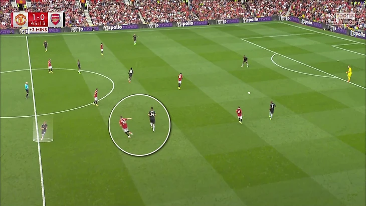 7. Именно с прогрессом команды Артеты в преодолении прессинга связан перелом по ходу первого тайма. Команда стала лучше контролировать первую стадию, чисто доводить мяч до трети «МЮ» и прижала соперника.