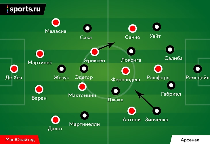 Результатом стал рисунок, в котором «МЮ» совсем прижался. Мяч слишком быстро доставлялся к штрафной Де Хеа – гол Букайо Сака стал следствием отрезка внушительного перевеса гостей.