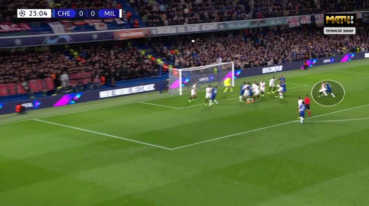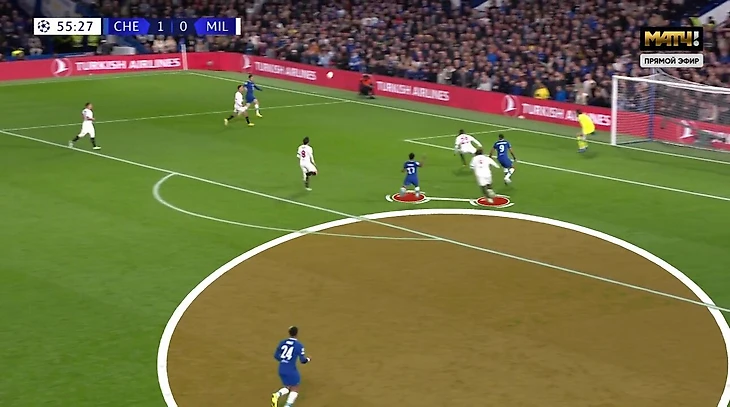 С 20-й по 25-ю «Челси» организовал 4 опасных момента после стандартов – буквально каждый штрафной и угловой завершался ударом. Каждый раз пытались выводить на удар Тиаго Силву. «Милан» явно терялся.