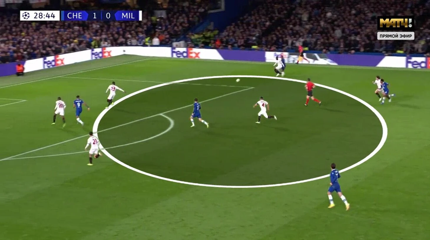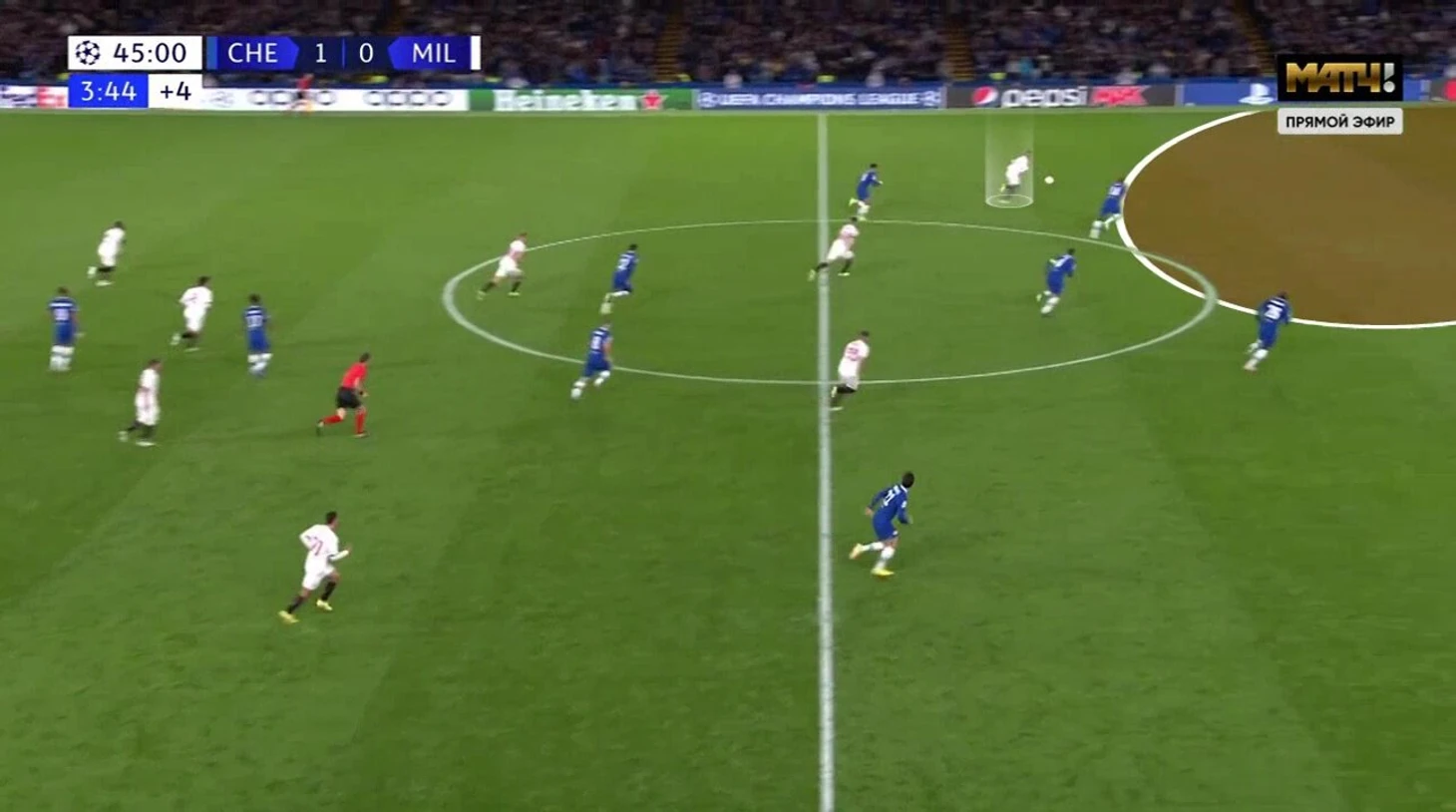 «Челси» ничего не позволил «Милану» в стадии владения до самого конца компенсированного времени первого тайма. Гости даже не могли пробить в сторону ворот. К первому шансу соперника команда Поттера могла уже вести в несколько мячей. Впечатляющая степень контроля. Чтобы ее добиться, Грэм поумерил прессинг. «Челси» очень терпеливо выбирал момент для начала давления.