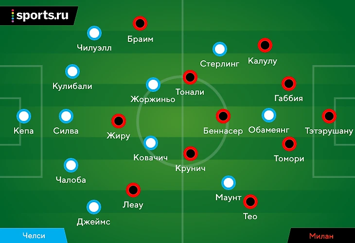 В отличие от Пиоли, Грэм Поттер на выходных провел большую ротацию – отдыхали сразу семь игроков, обыгравших «Милан». На «Сан-Сиро» все вернулись. По сравнению с первым матчем была лишь одна перестановка. Вынужденная – вместо травмированного Уэсли Фофана в центре защиты появился Трево Чалоба. Схема, которую выбрал Поттер, тоже сыграла важную роль – 3-4-2-1 с Маунтом и Стерлингом в роли десяток.