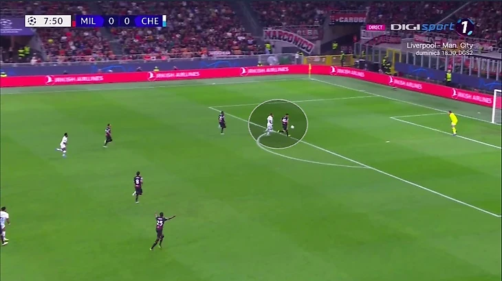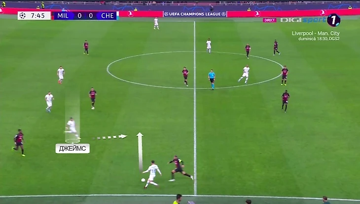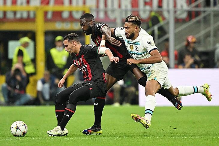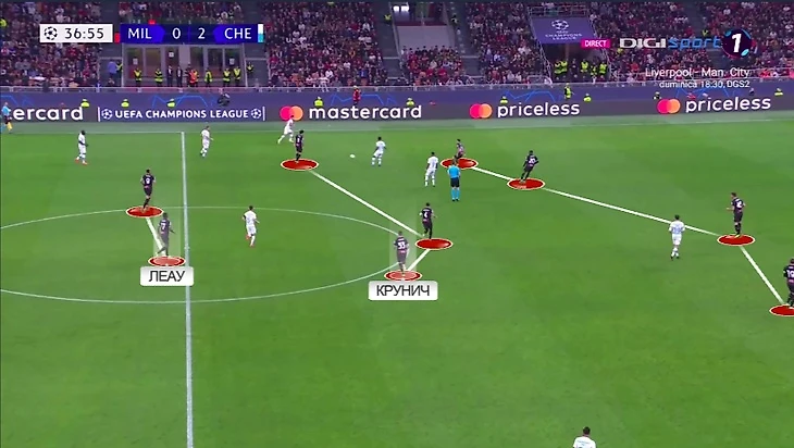 Она здорово помогла в персональном давлении. Атакующая тройка из Леау, Жиру и Диаса давила на тройку защитников «Челси», а Тонали и Крунич играли четко по Ковачичу и Жоржиньо. На латералей выдвигались крайние защитники – Тео и Калулу: