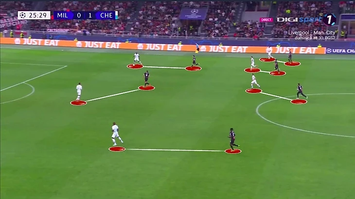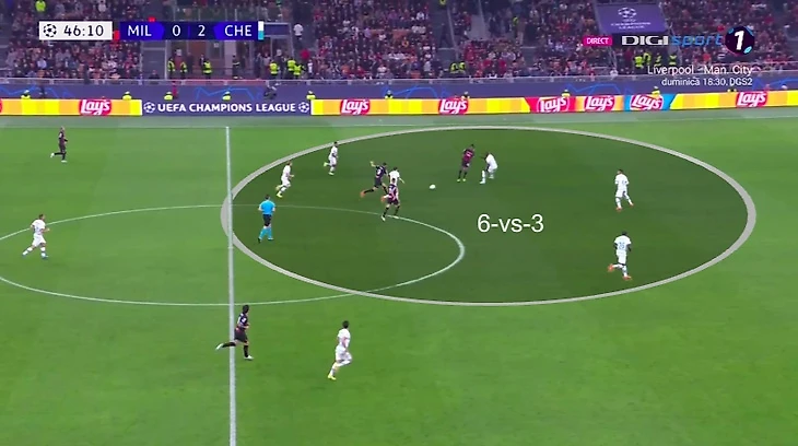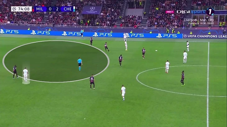 Итог этого отрезка – максимально противоречивый. С одной стороны, «Милан» здорово сдерживал прессингом – до удаления Томори «Челси» не нанес ни одного удара и даже не имел перевеса по владению (50% на 50%). С другой, эпизод с пенальти подчеркнул сложность задачи, которую накладывал на защитников прессинг Пиоли.
