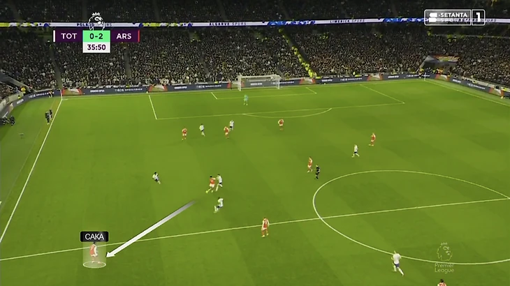 Перед вторым – еще один пас на Сака. В данном случае отрезал сразу трех игроков «Тоттенхэма»:
