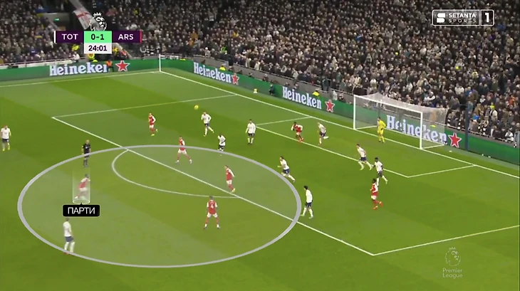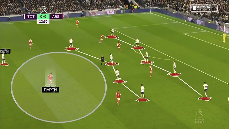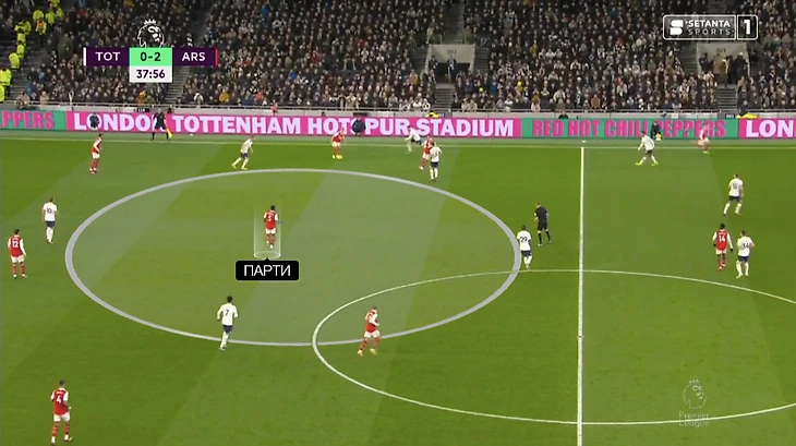 Вот редкая попытка «шпор» попрессинговать в первом тайме – «Арсенал» легко выходит через Парти: