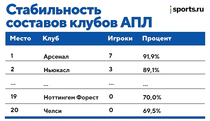 Ни один футболист «Челси» не сыграл в старте во всех матчах АПЛ этого сезона. Процент использования 11 лидеров по сыгранному времени – самый низкий в лиге. Это говорит о наибольшей частоте изменений и экспериментов. Часть из них связана с травмами, часть – с тренерскими решениями.