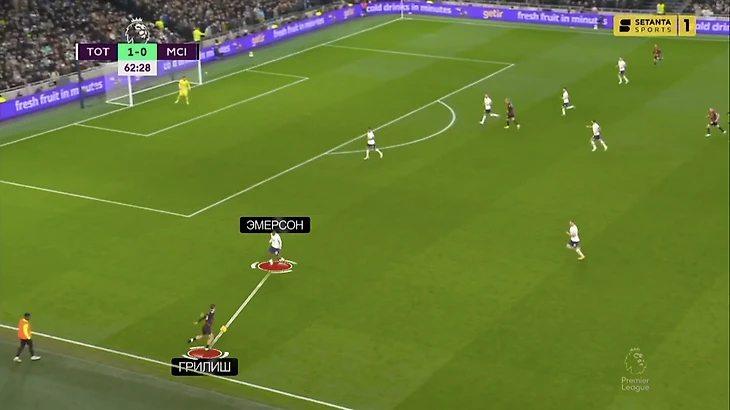 Как результат «Тоттенхэм» даже из этой персональной дуэли выжал больше, чем «Сити» – за всю игру Грилиш сделал только 1 пас под удар партнеру. Эмерсон отлично отреагировал на появление нового конкурента за позицию.