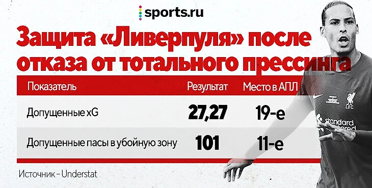 Если взять отрезок после отказа от постоянного прессинга, «Ливерпуль» обороняется на уровне аутсайдера АПЛ: