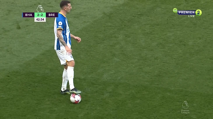 Чтобы заставить соперника пойти в прессинг изначально, защитники «Брайтона» не только долго пасуются между собой. Еще одна фишка – поставить ногу на мяч или обработать передачу подошвой.