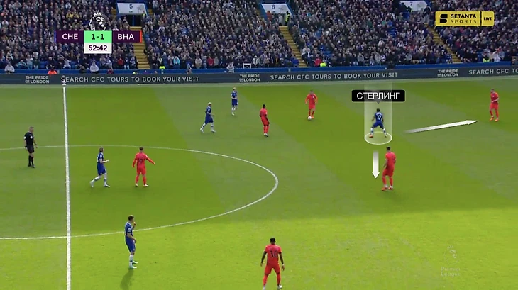 Тут Рахим Стерлинг разрывается на самом первом этапе – между центральными защитниками «Брайтона»: