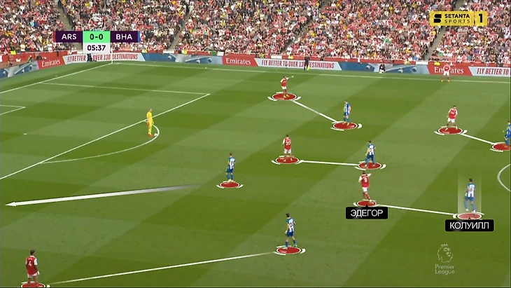 Дуэль зафиксировала прогресс «Брайтона» в прессинге по ходу сезона. В матче первого круга один из четырех мячей «Арсенала» пришел после выдвижения Колуилла за Эдегором – защитник не успел накрыть, норвежец вскрыл разрезающим пасом. Во втором круге Мартин был бессилен – Микелю Артете даже пришлось поменять его во втором тайме.