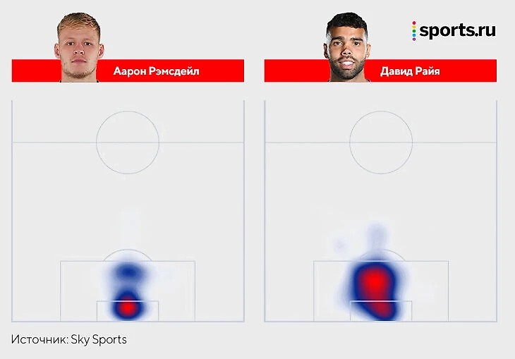 Этот момент подметил сайт Sky Sports, составив для сравнения тепловые карты вратарей «Арсенала». Райя играет гораздо выше, то есть делает именно то, что Артета требовал от Рэмсдейла.