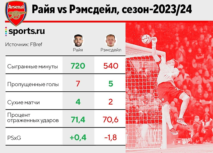 Рэмсдейл, вероятно, не в лучшем расположении духа. Он впервые в ситуации, когда нужно отстаивать место в стартовом составе, а не бороться за него. В совокупности с большой публичной поддержкой Райи со стороны Артеты справиться с этой задачей будет довольно тяжело.