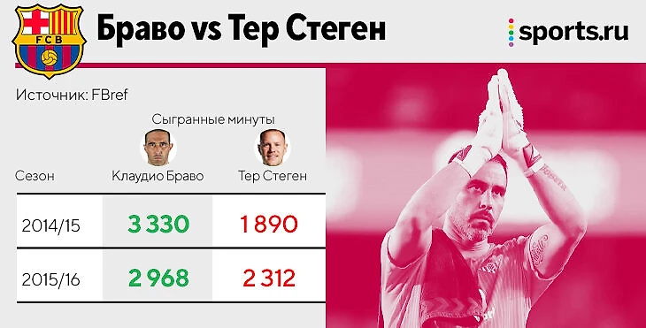 «Барселона» на протяжении двух сезонов успешно делила игровое время между Клаудио Браво и Марком тер Стегеном. Было четкое разделение по турнирам: чилиец играл в чемпионате, а немец – во внутренних кубках и Лиге чемпионов.