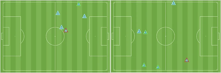 Помимо того, что появление Жоржиньо работает на компактность «Арсенала» в защите, еще его присутствие помогает разгрузить Райса. Распределение ролей против «Ливерпуля» подчеркивает карта оборонительных действий (отборы + перехваты). Жоржиньо (слева) приносил пользу, как правило, на чужой половине, Деклан (справа) – на своей: