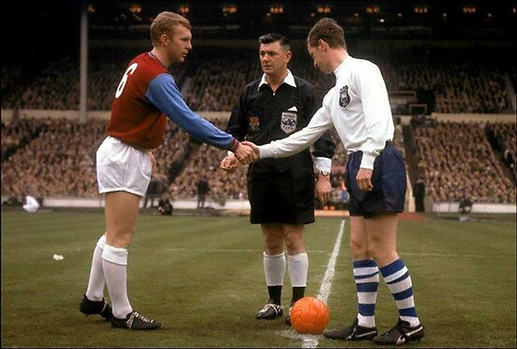 2 мая 1964 года, «Уэмбли», финал Кубка Англии. Бобби Мур жмет руку капитану «Престон Норт Энда» Нобби Лоутону.