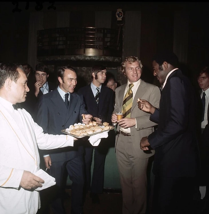 Благотворительный ужин. Джимми Гривз, Питер Гротиер, Бобби Мур, Клайд Бест и половина Харри Реднаппа, 1970 год.