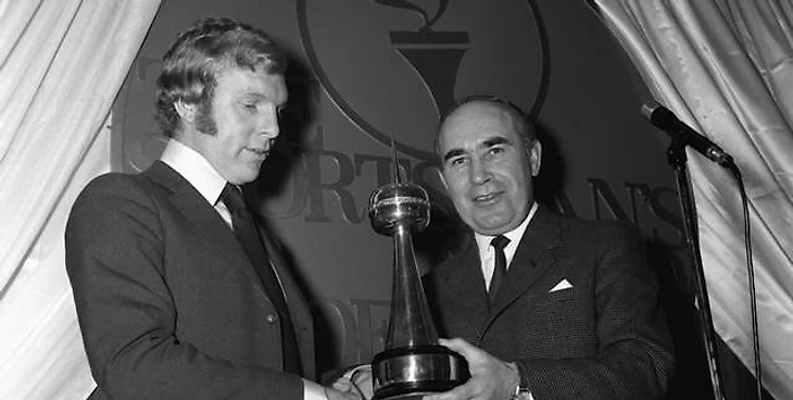 Альф Рамсей вручает Муру награду Спортсмен Года, 1970 год. Злотой мяч 1970 года достается Герду Мюллеру, Мур занял второе место. Не вовремя Герд раззабивался.