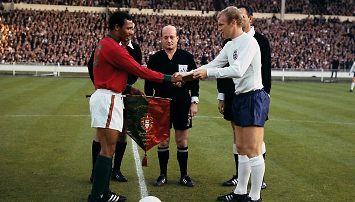 26 июля 1966 года «Уэмбли». Полуфинал Чемпионата Мира Англия 2-1 Португалия. Бобби Мур и Марио Колуна. Матч стал бенефисом Бобби Чарльтона, он отправил оба гола в ворота португальцев. Англия без труда вышла из группы, где обыграла Французов и Мексиканцев с одинаковым счетом 2-0 и сыграла в нулевую ничью с Уругваем. В четвертьфинале Англия победила Аргентину со счетом 1-0.