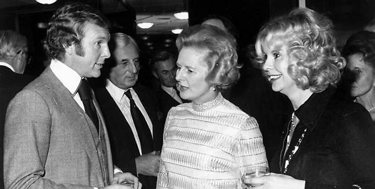 Бобби и его жена, что-то обсуждают с Маргарет Тетчер, июль 1966 года.