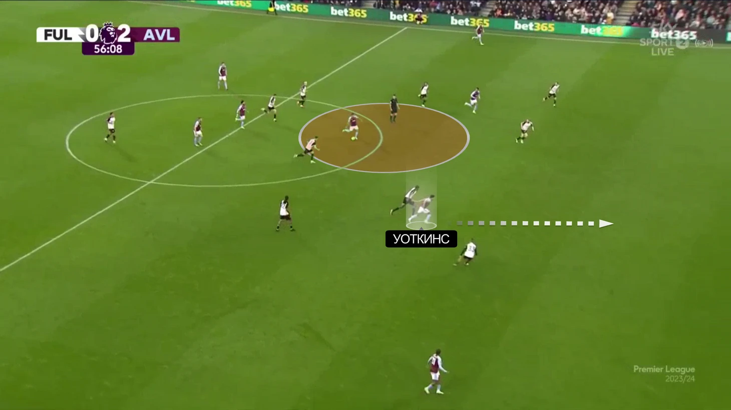 Второй вариант – выманить соперника в прессинг, используя короткие розыгрыши. Если противник ведется, Уоткинс получает пространство для рывка.