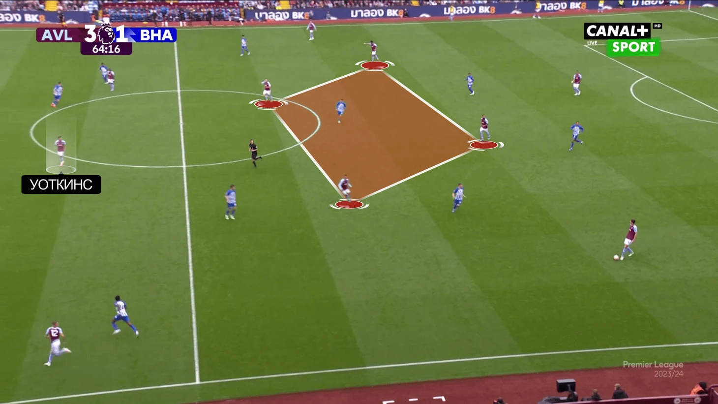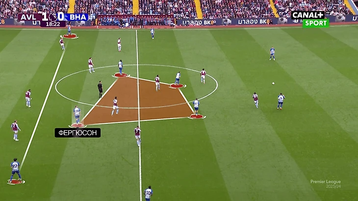 Эмери понимает плюсы и минусы Уоткинса и исходя из этого строит атаки. В этом плане удобно сравнить «Астон Виллу» и «Брайтон» – обе команды используют похожую структуру (с квадратом в центре поля), но при этом по-разному задействуют форварда.