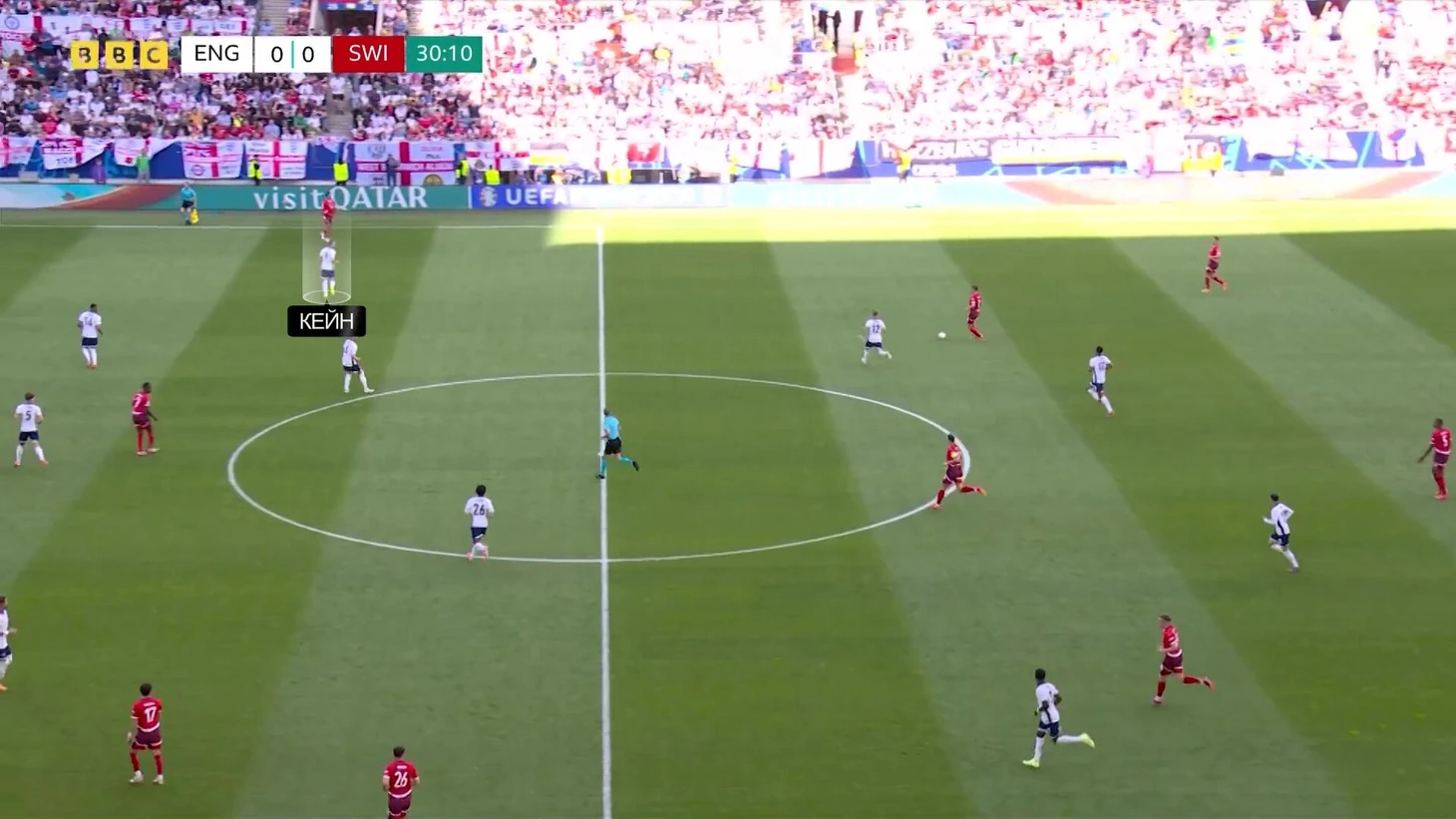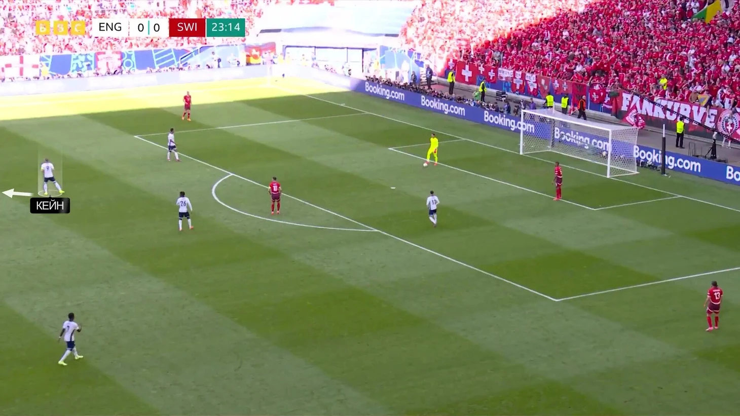При прессинге против Швейцарии Харри иногда убегал из кадра, так как очень дисциплинированно выполнял задание играть по Ремо Фройлеру: