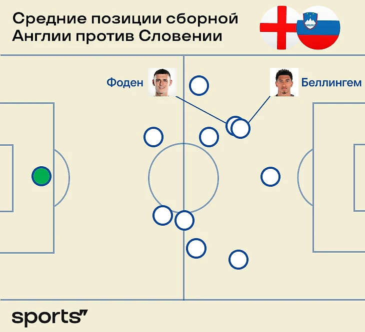 Нехватка сыгранности накладывается на схожую любимую зону двух лидеров – Фодена и Беллингема. Проиллюстрировать это можно через карту усредненных позиций – оба сваливаются в левый полуфланг: