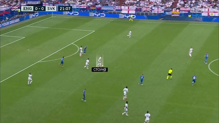 Например, на базовых настройках Джону Стоунзу запрещается делать фирменные по игре за «Сити» смещения в полузащиту. Тут он обычный центральный защитник. В моменте против Словакии он не выдержал – и после перехвата добежал до чужой опорной зоны: