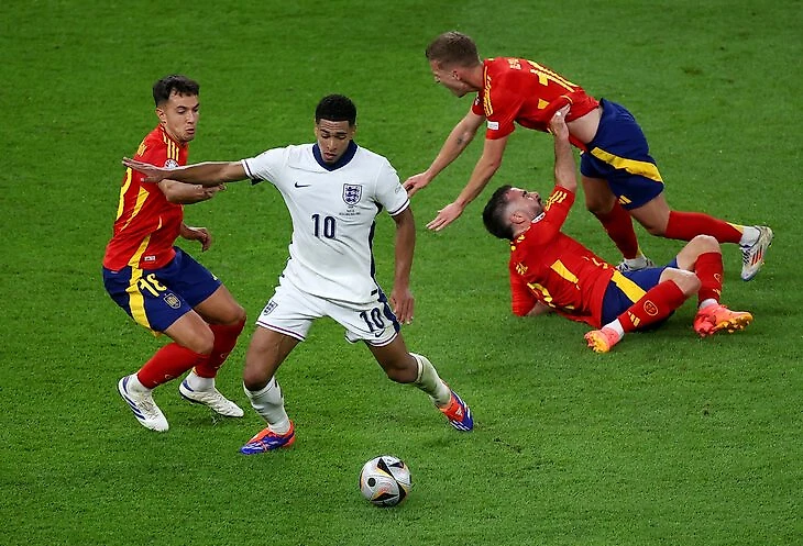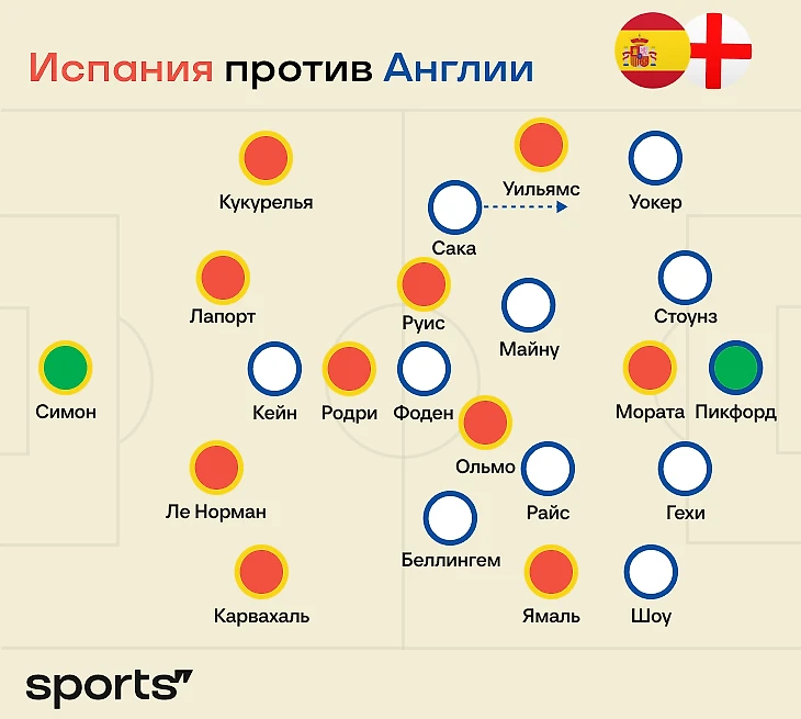 Во-вторых, английский план против Уильямса и Ямаля в первом тайме работал. Чтобы показать себя в полной мере, им потребовалась поддержка от Карвахаля и Кукурельи. Иногда через смену позиций на чужой трети, иногда через отвлекающие рывки.