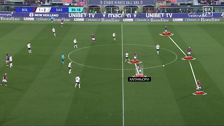 Есть еще два направления, в которых Калафьори может улучшить «Арсенал». Первое – проходы с мячом. «Калафьори очень хорош – я отдельно наблюдал за ним в последнем сезоне. Он одна из причин, почему «Болонья» попала в ЛЧ. Он очень спокоен при владении – любит рушить линии в схеме соперника через рейды с мячом, что сильно помогает команде в атаке», – описывал Бакари Санья.