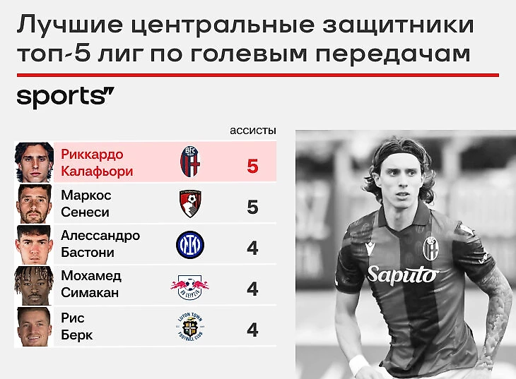 Качества Калафьори раскрылись на относительно новой позиции (изначально он левый защитник) в команде, которая ставит на владение. Вероятно, переход в топ-клуб еще сильнее подчеркнет его достоинства. При этом уровень последнего сезона уже предельно высокий – уверенное место почти в любой символической сборной Серии А.