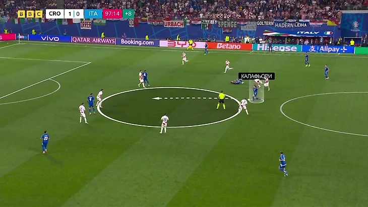 На Евро Калафьори чаще других центральных защитников достигал чужой трети поля при проходах с мячом (2,7 на 90 минут). Риккардо не только выбил прекрасные цифры, но и закрепил их важнейшим эпизодом, спасая команду в матче против Хорватии. Он распознал зону, дерзко продвинул мяч и вовремя покатил с правой ноги на партнера в убойной позиции.