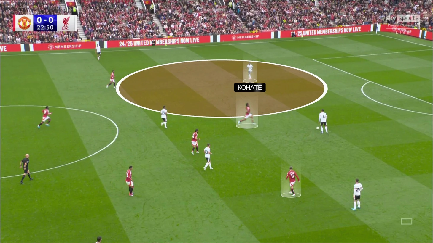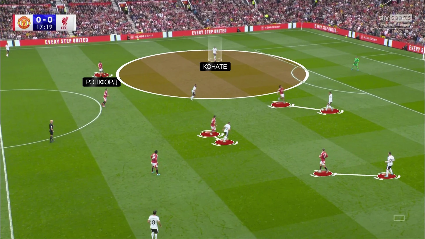 У «МЮ» часто возникала ситуация, когда часть команды выжидает, а другая прессингует. Тут Зиркзе и Гарначо начали давить, но у «Ливерпуля» легчайший выход – на Ибраима Конате с гектаром пространства, потому что Рэшфорд не поддержал: