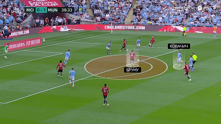 Теперь опорника «Сити» прикрывают сразу два партнера, а не один как было раньше. Схема – 4-1-4-1 вместо 4-4-2. Рядом с опорником две восьмерки – как правило, это КДБ и Бернарду. Ковачич мог оценить эти меры поддержки на старте сезона: