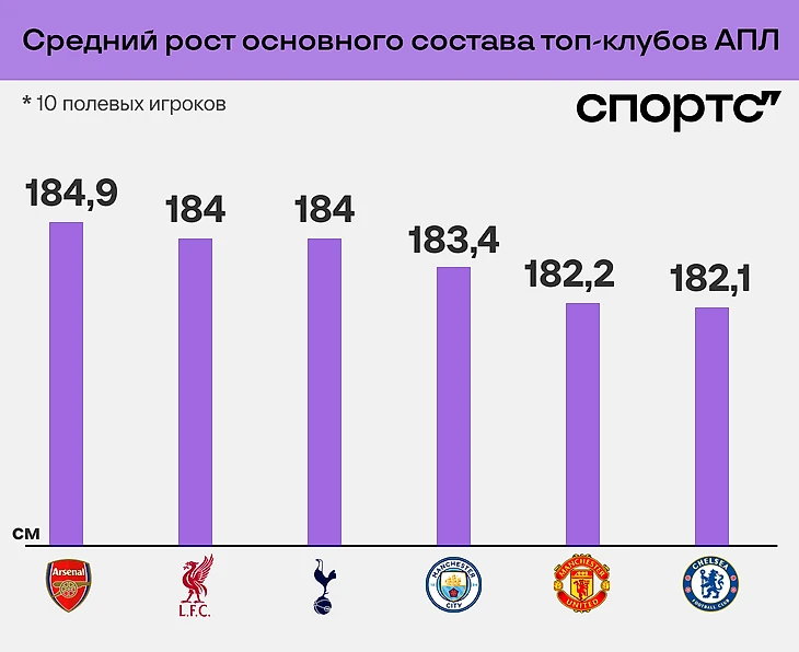 Когда в 8-м туре АПЛ «Арсенал» приехал к «Борнмуту», Артета выставил в основе лишь двух футболистов ниже 182 см – Леандро Троссарда и Рахима Стерлинга (оба – 172). У «Борнмута» таких игроков набралось шесть.