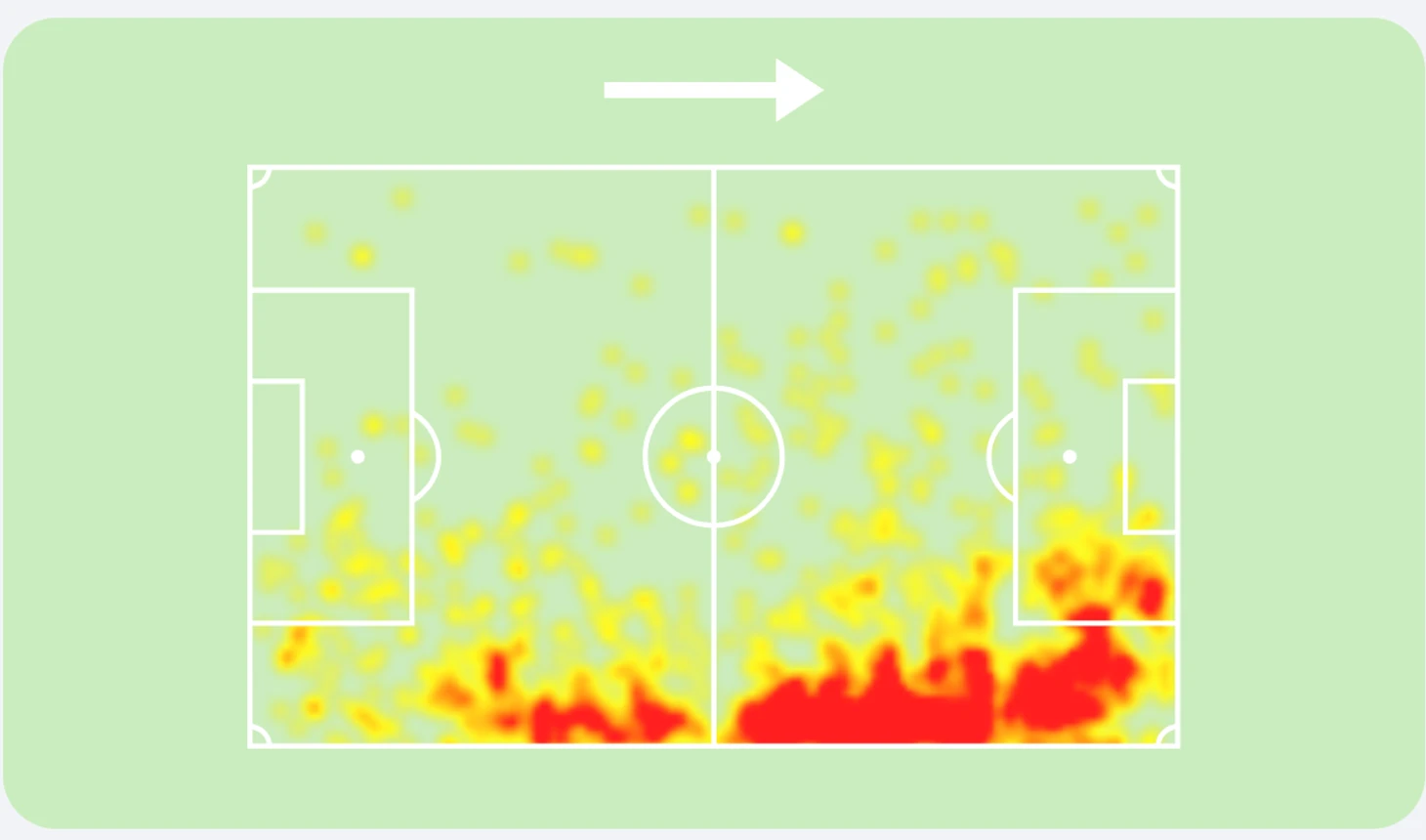 Базовые отличия в ролях ТАА и Фримпонга видны через тепловые карты. Джереми открывается на чужой половине и аномально много для своей позиции внутри штрафной.