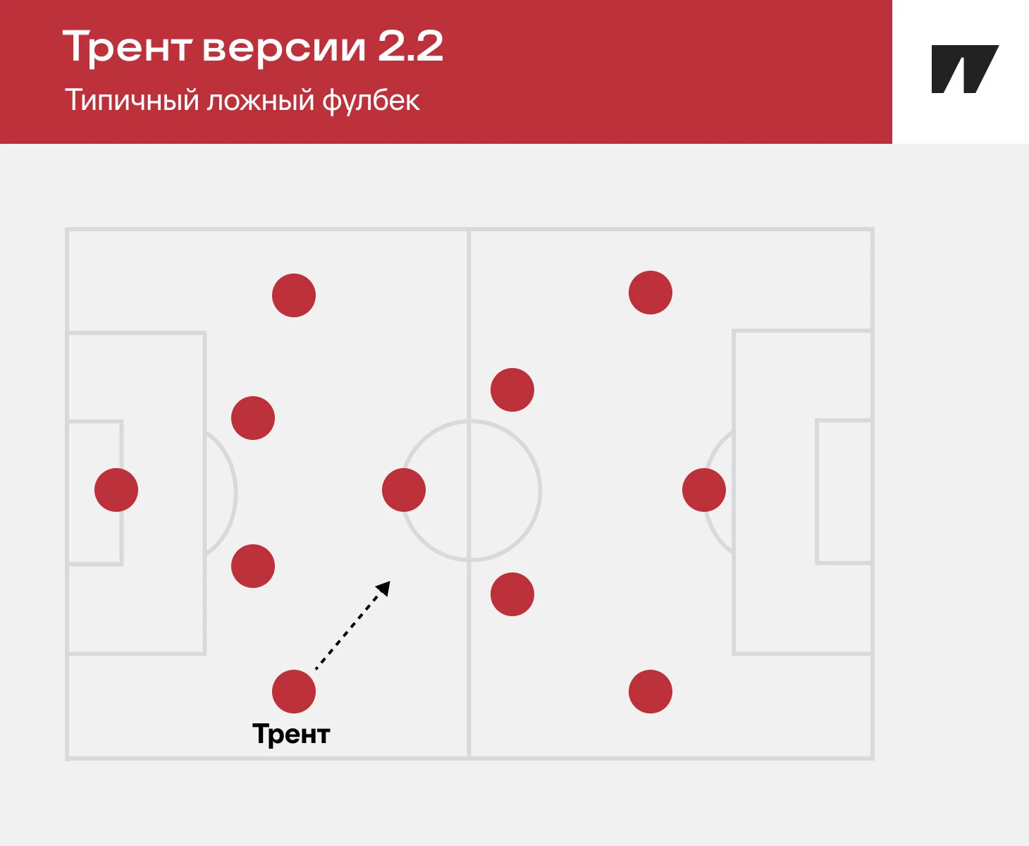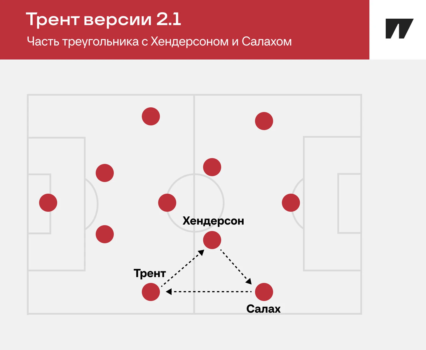 ТАА рассказывал, что тренеры просили меняться позициями и сбивать сопернику ориентировки. По эпизоду каждый мог оказаться шестеркой, восьмеркой и вингером. У Трента стало больше смещений в середину, но до типичного ложного фулбека было еще далеко.