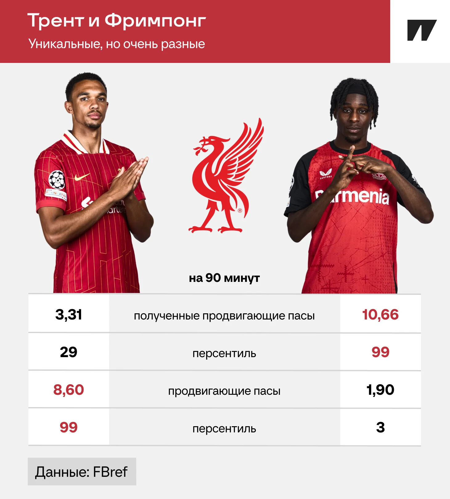 Слот видит в них максимум «клозеров» – игроков, которых можно выпустить по ходу матча для удержания счета. В этом сезоне набралось множество примеров такой пользы. Самые запоминающиеся – сдерживание Жереми Доку в концовках матчах с «Ман Сити». Трент из-за безумного объема уставал – вместо него появлялся либо Гомес, либо Куанса.