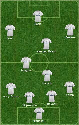 В данной расстановке схема все-таки ближе к 4-2-4, нежели, к 4-3-3, но, как я понимаю, одна является следствием другой. Бэйл и Леннон будут меняться местами, Дефо периодически оттягиваться, а ван дер Ваарт будет играть чуть глубже, чем при Реднаппе. Я себе это представляю примерно так, а как оно будет, сезон покажет.